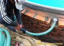 Все подключили к насос-фильтру, начинаем обратную засыпку речным песком
